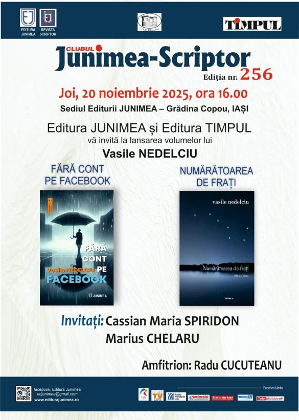 Joi 20 noiembrie 2025, ora 16, la sediul Editurii Junimea din Parcul Copou va avea loc Clubul Junimea Scriptor, ediția 256. Cu această ocazie vor fi lansate volumele Fără cont pe facebook (editura Junimea) și Numărătoarea de frați (editura Timpul), autor Vasile Nedelciu. Invitați: Cassian…